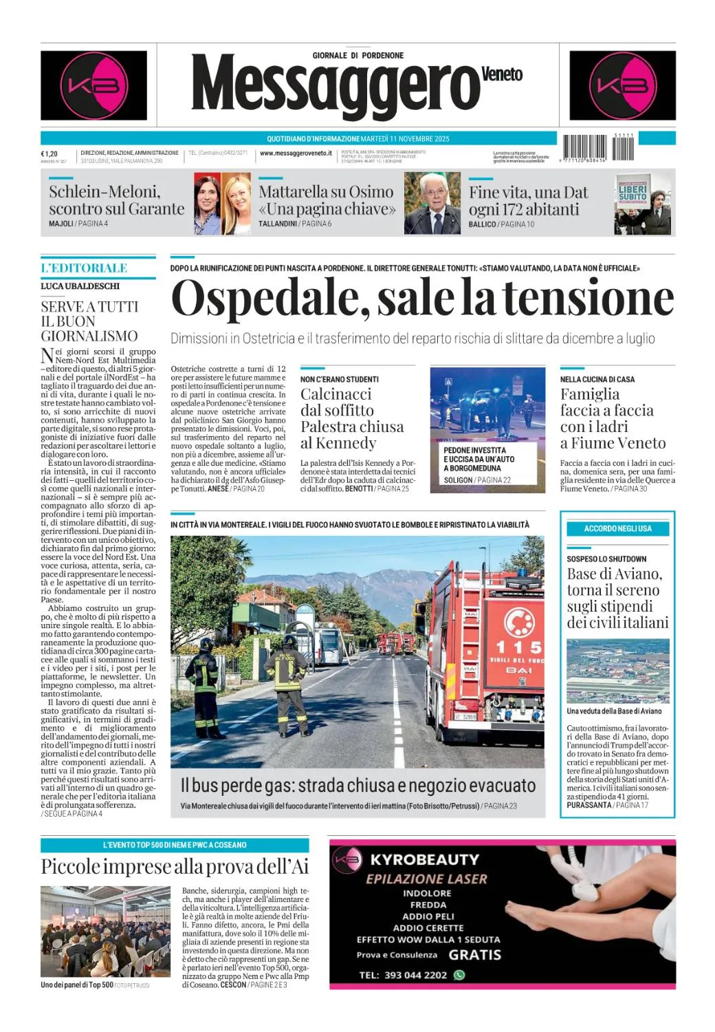 Messaggero Veneto Pordenone - 11 Novembre 2025