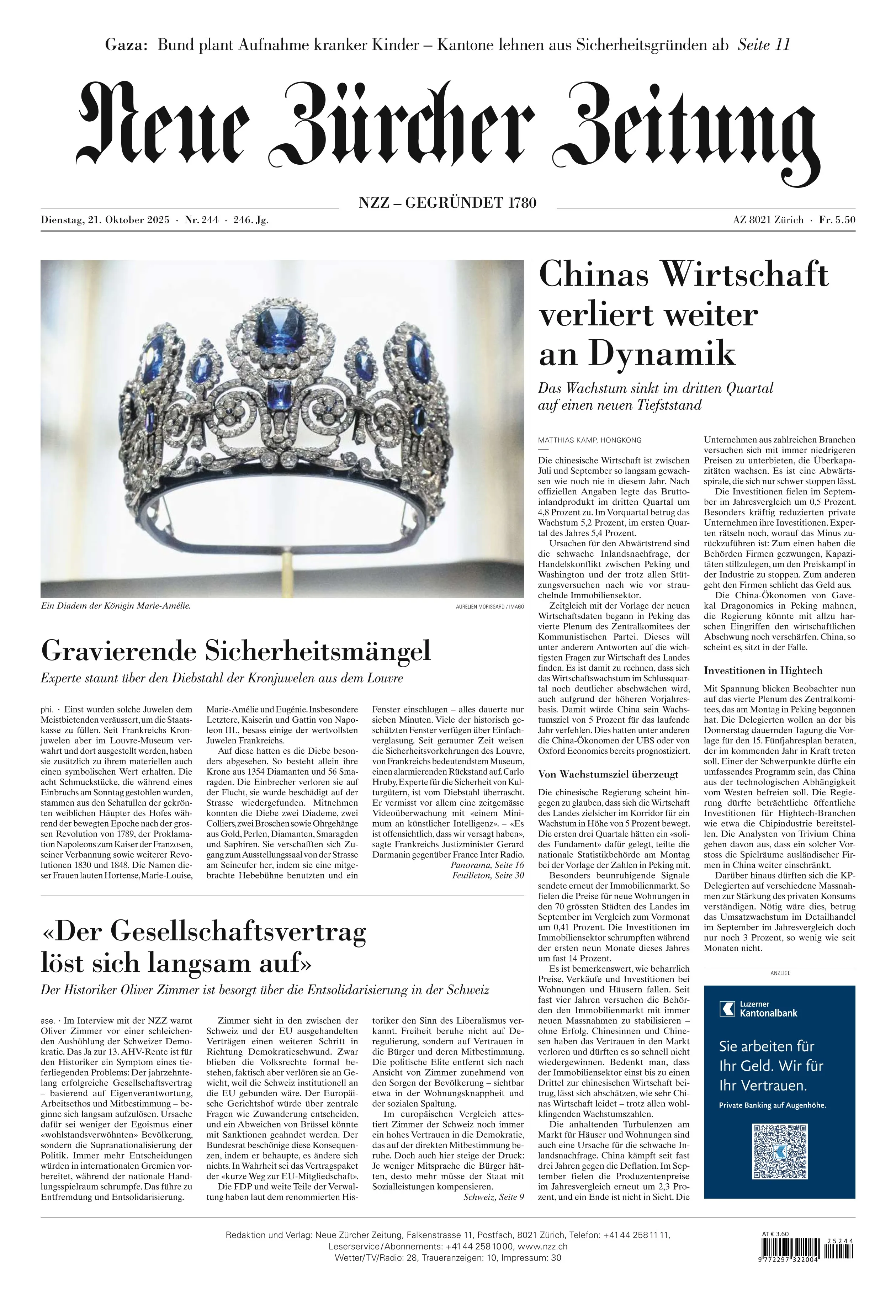 Neue Zuercher Zeitung - 21 October 2025