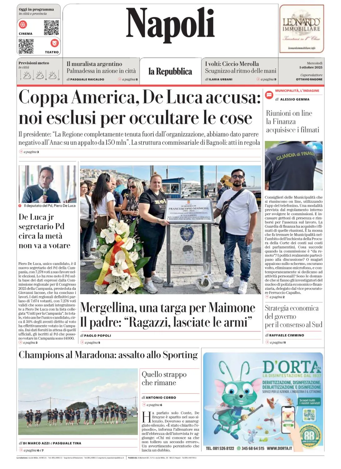 la Repubblica Napoli - 1 Ottobre 2025