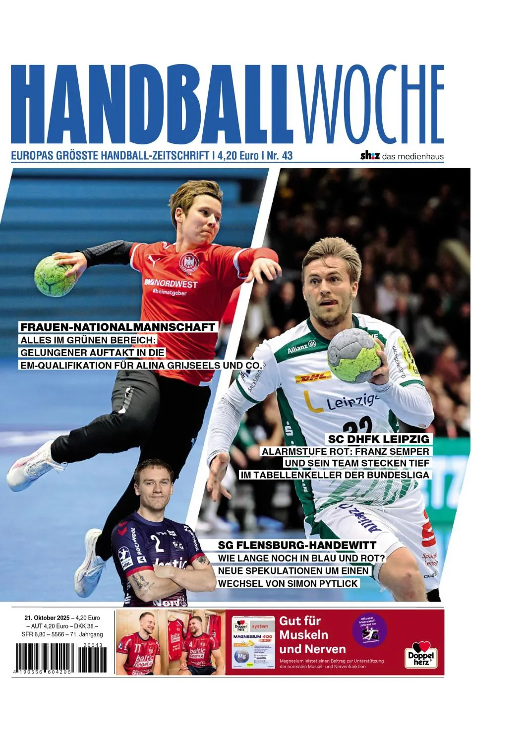 Die stärkste Liga der Welt, die größte Handball-Zeitschrift Europas - zwei starke Partner: Die Handballwoche ist weltweit das einzige Fachmedium, das wöchentlich über den kleinen und großen Handball berichtet. Seit nunmehr 55 Jahren ist die Handballwoche Das Leitmedium der Szene und unverzichtbare Lektüre für Spieler, Trainer und Fans. Ob Champions League, deutsche Bundesliga oder Regionalliga - ob Frauen-Handball oder die Ligen aus aller Welt, die Handballwoche ist immer auf Ballhöhe und besticht durch Aktualität, exklusive Statistiken und große Fach-Kompetenz.